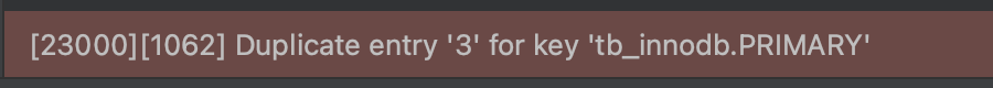 ๋น์ฐํ primary key๋ก ์ค์ ๋ ์ปฌ๋ผ์ ๋์ผํ ๊ฐ์ ๋ฃ์ผ๋ ค๊ณ ํ๊ธฐ ๋๋ฌธ์, ๋ ํ