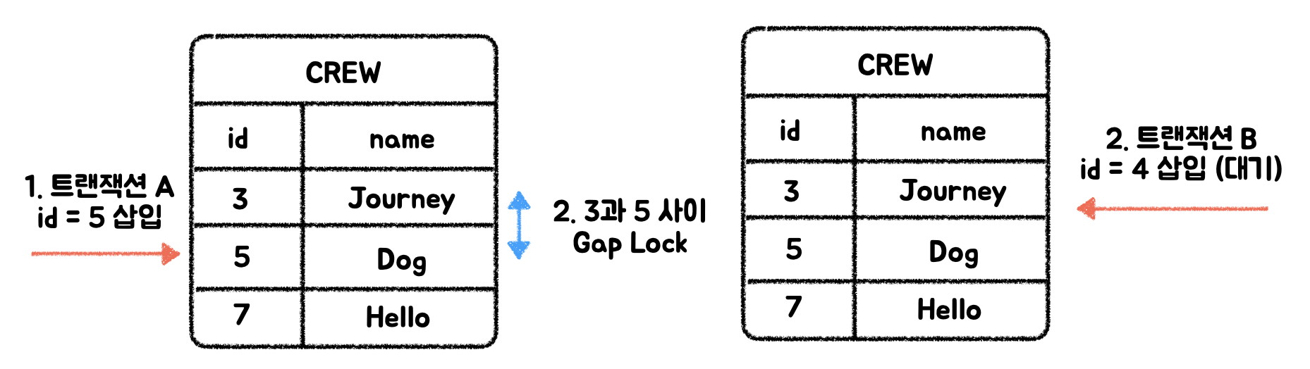 A๊ฐ Gap S-Lock์ ๊ฐ์ง๊ณ ์๊ณ , ํธ๋์ญ์
