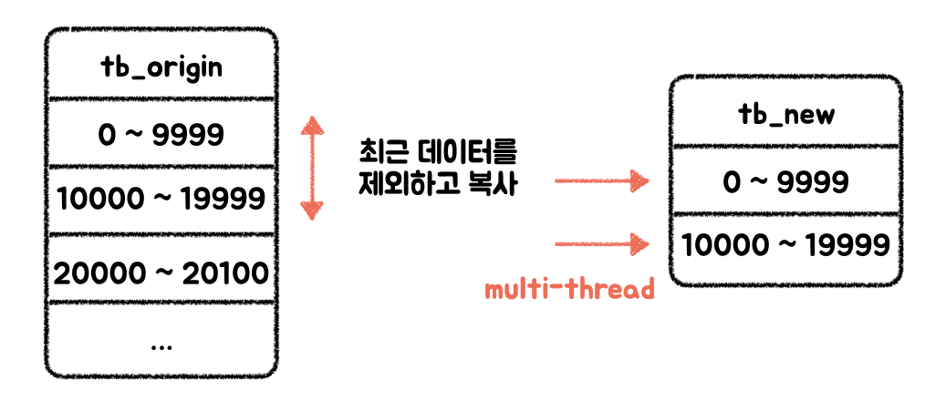 select * from tb_1 where id between 1 and 10;์์ ๊ฐ์ ์ฟผ๋ฆฌ๊ฐ ์์ ๋ 1~10 ์ฌ์ด์ X๋ฝ์ด ๊ฑธ๋ฆฌ๋ ๊ฒ๊ณผ ๋์ผํ๊ธฐ ๋๋ฌธ์, ์๋ก์ด ๋ฐ์ดํฐ๊ฐ ์ฝ์