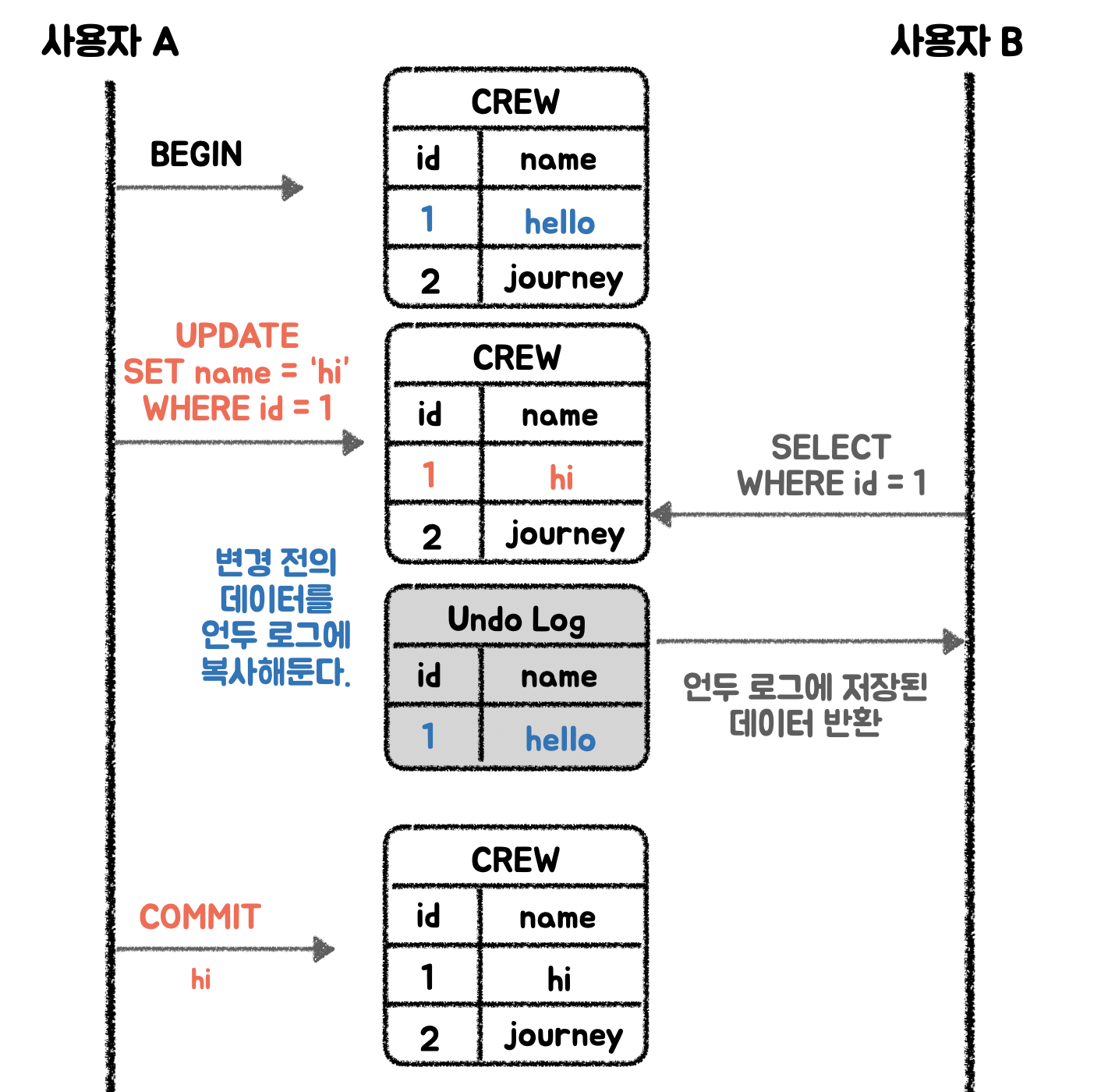 ์ ์ํด ๋ฐ์ดํฐ๊ฐ ๋ณ๊ฒฝ๋๋๋ผ๋ Commit์ด ์๋ฃ๋ ๋ฐ์ดํฐ๋ง ์กฐํ๊ฐ ๊ฐ๋ฅํ๋ค.