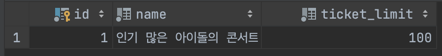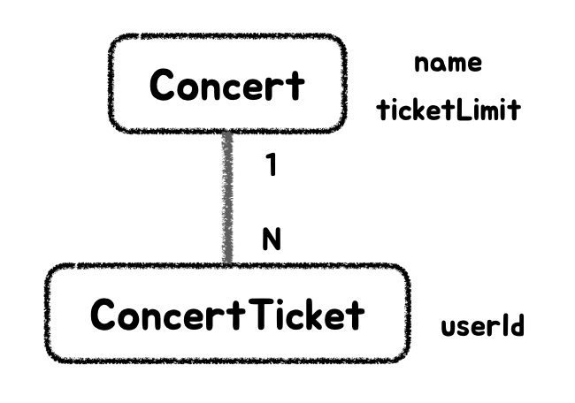 ์ฝ์ํธ์ ํฐ์ผ์ 1:N ๊ด๊ณ๋ฅผ ๊ฐ์ง๊ณ , ์ฝ์ํธ๋ ๋ช ์ข์๊น์ง ๊ฐ์ง ์ ์๋์ง์ ๋ํ ๊ฐ์๋ฅผ ๊ฐ์ง๊ณ ์๋๋ค. (ticketLimit)