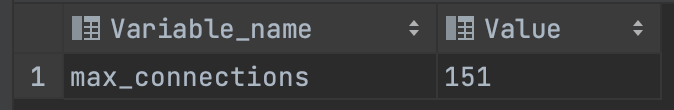 ํ์ธํด๋ณด๋, ๊ธฐ๋ณธ์ ์ผ๋ก mysql์์ ์ ๊ณตํ๋ ์ต๋ ์ปค๋ฅ์ ์๋ 151๊ฐ์ด๋ค.