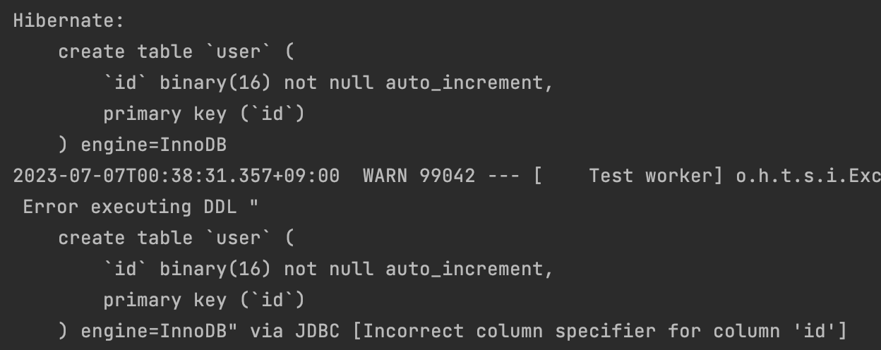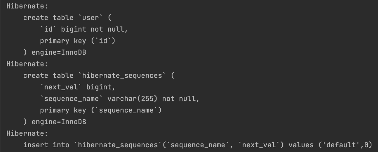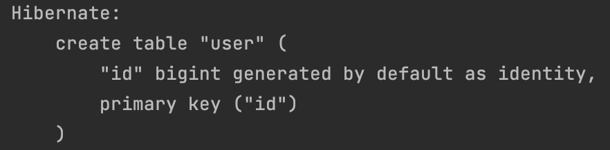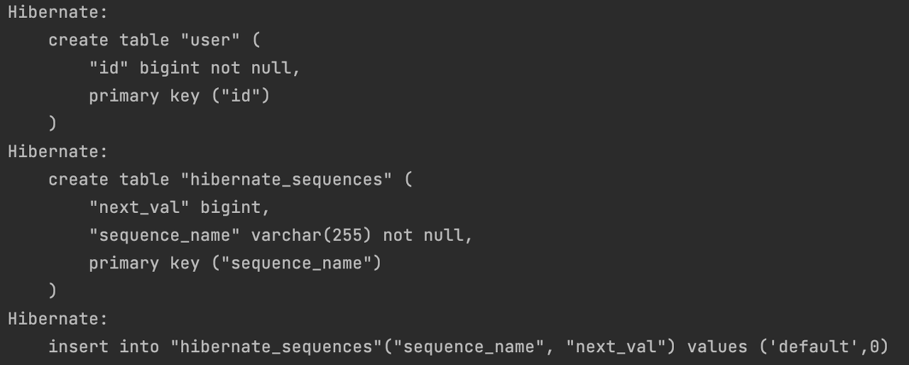 ์ํ์ค๋ฅผ ์ง์ํ๋ h2์์๋, ์ํ์ค๋ฅผ ์์ฑํ์ง ์๊ณ ๋จ์ํ pk๊ฐ UUID์ธ user ํ ์ด๋ธ์ ์์ฑํ๋ ๊ฒ์ ๋ณผ ์ ์๋ค.