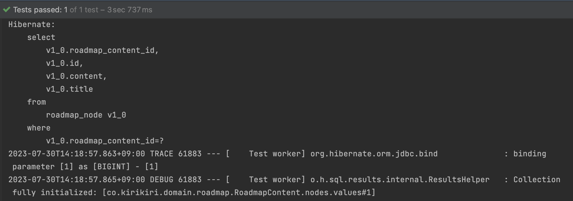 ์ฌ๊ธฐ์ ๋ด์ผํ๋ ์ ์, ๋ก๋๋งต(Roadmap) - ๋ก๋๋งต ๋ณธ๋ฌธ(RoadmapContent)๊ณผ ๋ก๋๋งต ๋ณธ๋ฌธ(RoadmapContent)๊ณผ ๋ก๋๋งต ๋ ธ๋(RoadmapNode) ๋ชจ๋๊ฐ LAZY ์ ๋ต์ ์ฌ์ฉํ๊ณ ์๋ค๋ ๊ฒ์ด๋ค.