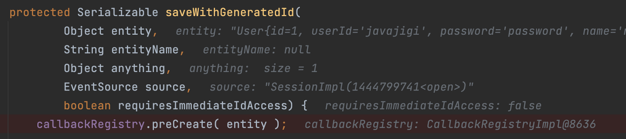๊ทธ๋ฌ๋ฉด ์์ ๊ฐ์ด callbackRegistry.preCreate() ๋ผ๋ ๋ฉ์๋๋ฅผ ํธ์ถํ๋ ๊ฒ์ ๋ณผ ์ ์๋ค.