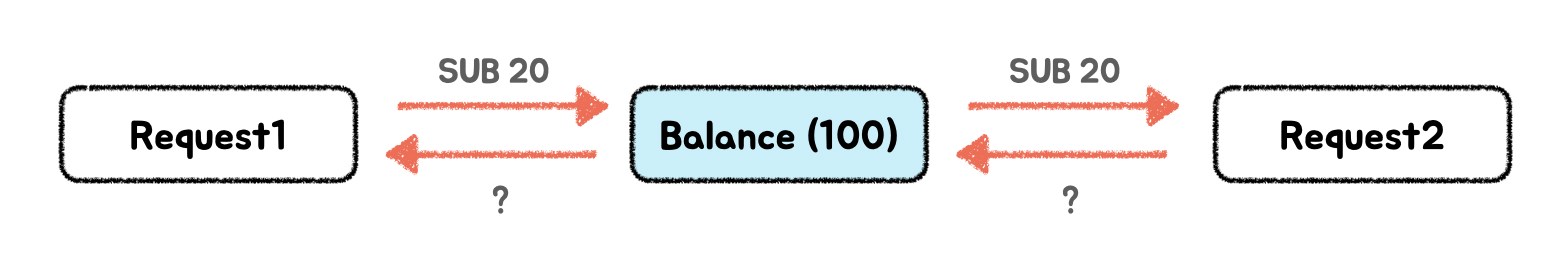 2. 2๊ฐ์ ์์ฒญ์ด ๋์์ 20์ฉ ์ถ๊ธ ์์ฒญ์ ์งํํ๋ค.