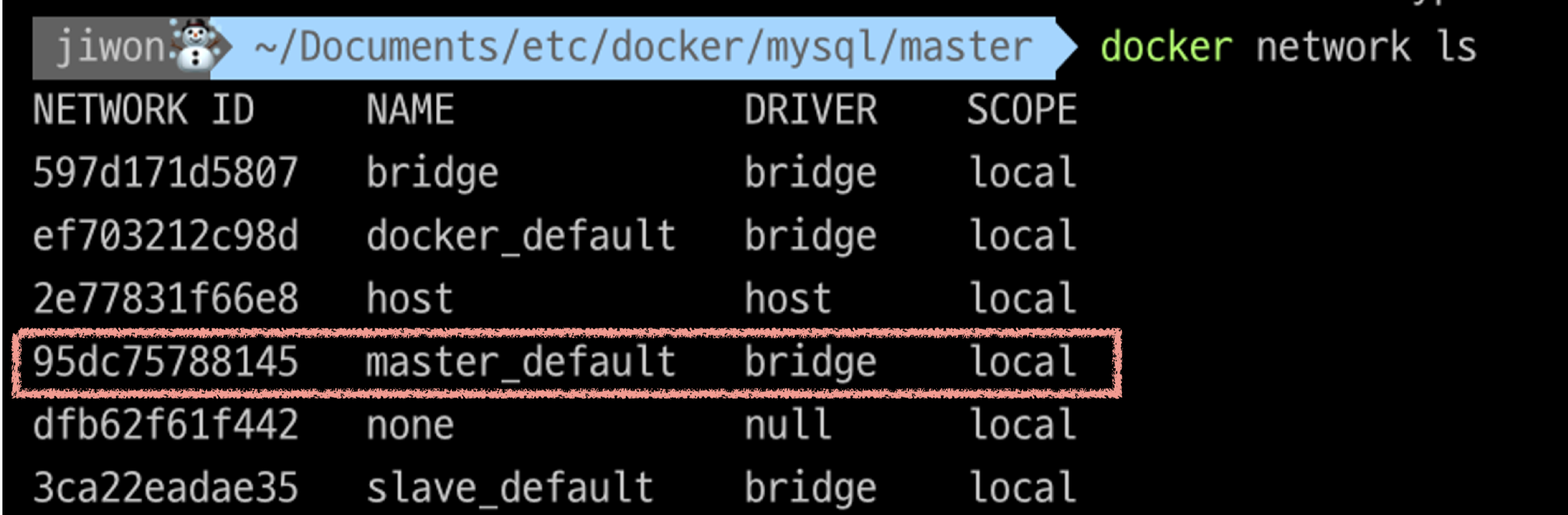 - ์ฐธ๊ณ ๋ก, ๋คํธ์ํฌ ์ด๋ฆ์ ํ์ฌ ์์นํ {ํจํค์ง ์ด๋ฆ_์ค์ ํ ์ด๋ฆ} ๊ณผ ๊ฐ์ด ๋ง๋ค์ด์ง๊ธฐ ๋๋ฌธ์, ๋์ ๊ฒฝ์ฐ ๋คํธ์ํฌ ์ด๋ฆ์ด master-practice-net์ผ๋ก ๋ง๋ค์ด์ก๋ค.