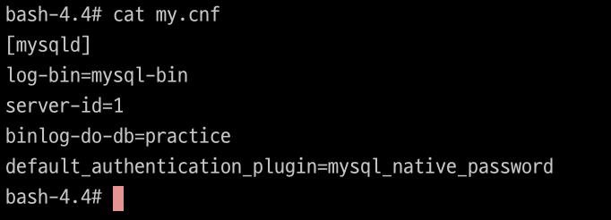 mySQL 8.0 ๋ฒ์ ์ ์ฌ์ฉํ์์ผ๋ฉฐ, ์์์ ๋ง๋ค์๋ my.cnf ํ์ผ์ ์ค์ ํ์ผ๋ก ํ์ฉํ๋๋ก ๋ง๋ค๊ธฐ ์ํด COPY๋ฅผ ํตํด ๋ด๋ถ ์ค์ ํ์ผ์ ๋ฎ์ด์์ฐ๋๋ก ๋ง๋ค์ด์ฃผ์๋ค.