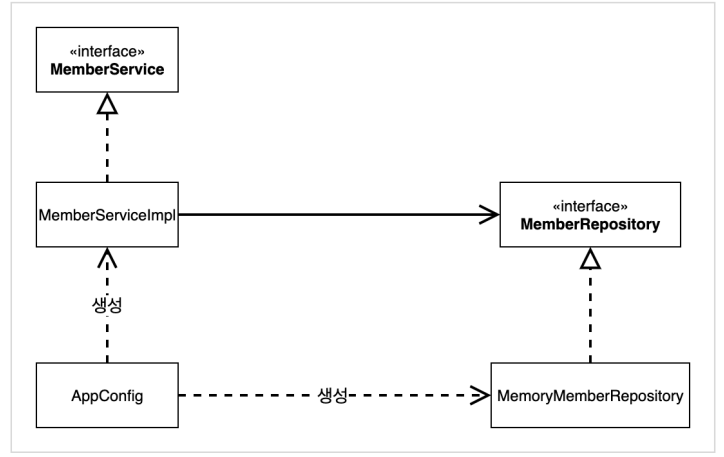 - ์ด๋ฌ๋ฉด, memberRepository๋ ๋ ์ด์ ๊ตฌํ์ฒด๋ฅผ ์์กดํ์ง ์๊ฒ ๋๋ค!