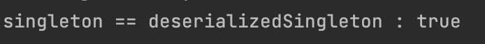 System.out.println("singleton == deserializedSingleton : " + result);