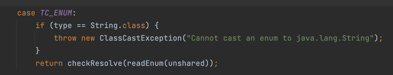 case๊ฐ ์น์ ํ๊ฒ enum์ ๋ํด์ ๋๋์ด์ ธ์๋ค ใ ใ (์ญ์ง๋ ฌํ ์ ์ฌ์ฉํ๋ readObject() ๋ฉ์๋๋ฅผ ์๊น์ฒ๋ผ ๊น๋ณธ ๊ฒ์ด๋ค.)