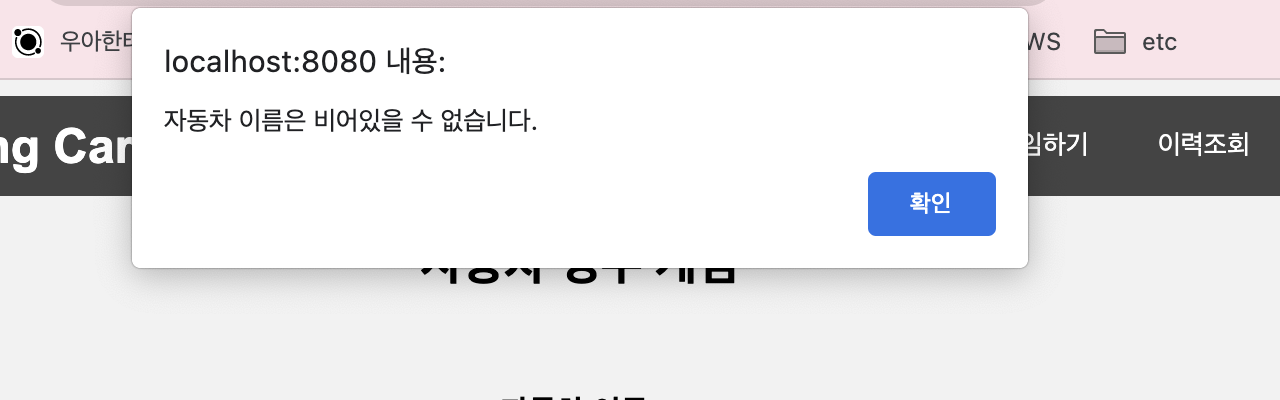 @NotBlank(message = "์๋์ฐจ ์ด๋ฆ์ ๋น์ด์์ ์ ์์ต๋๋ค.")