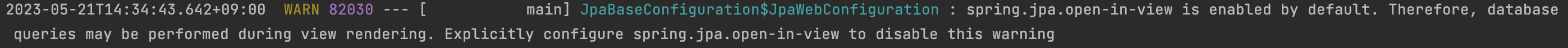 spring.jpa.open-in-view is enabled by default. Therefore, database queries may be performed during view rendering. Explicitly configure spring.jpa.open-in-view to disable this warning