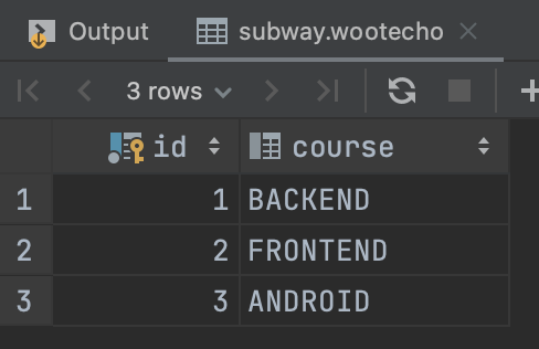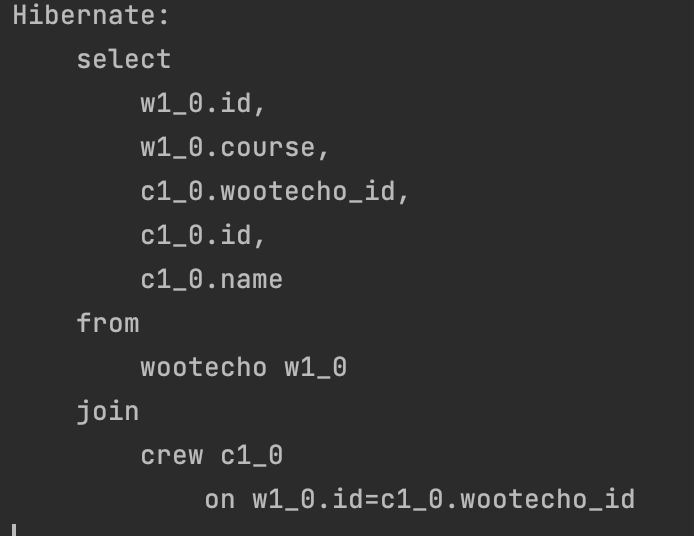 2. ์์ฑ๋ ์ฟผ๋ฆฌ๋ฅผ ๋ฐํ์ผ๋ก List<Wootecho> ์ํฐํฐ ์์ฑ