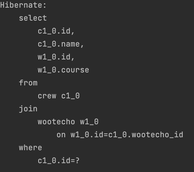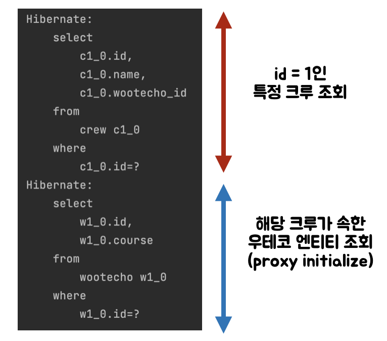 4. Wootecho ์ํฐํฐ์ ๊ฐ์๋งํผ select * from crew where wootecho_id = ? ์ฟผ๋ฆฌ ๋ฐ์