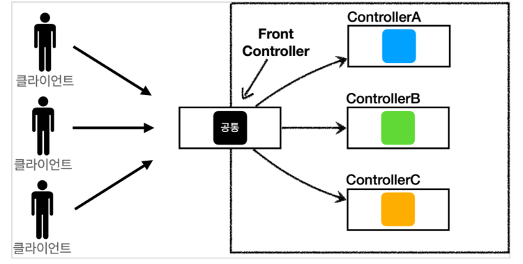 - ์ด์ ์๋ ํ๋ก ํธ ์ปจํธ๋กค๋ฌ๊ฐ ์ค์ ์ปจํธ๋กค๋ฌ๋ฅผ ํธ์ถํ์ง๋ง, ์ด์ ๋ ์ด๋ํฐ๋ฅผ ํตํด ์ปจํธ๋กค๋ฌ๋ฅผ ํธ์ถํ๋ค.